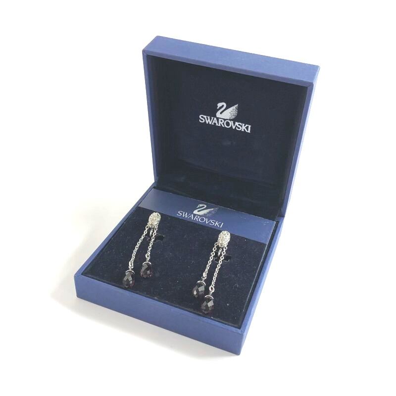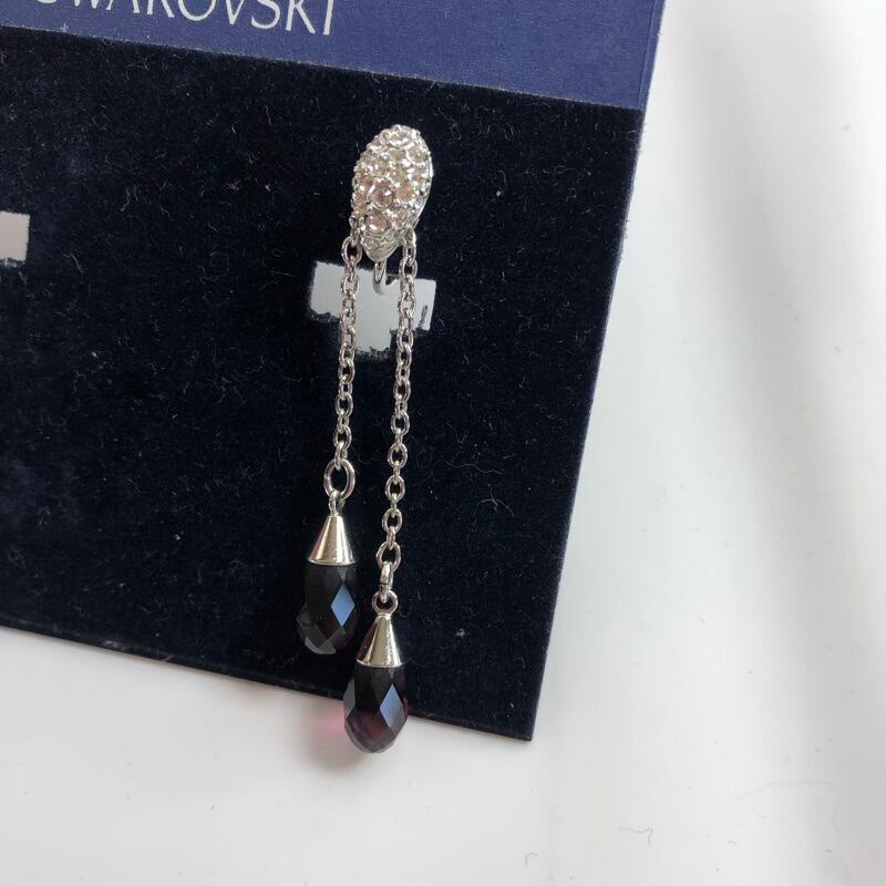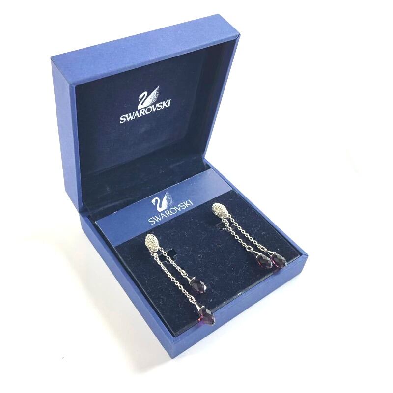スワロフスキー Swarovski イヤリング チェーン カラーストーン 箱入り 紫 ホワイト系 483311