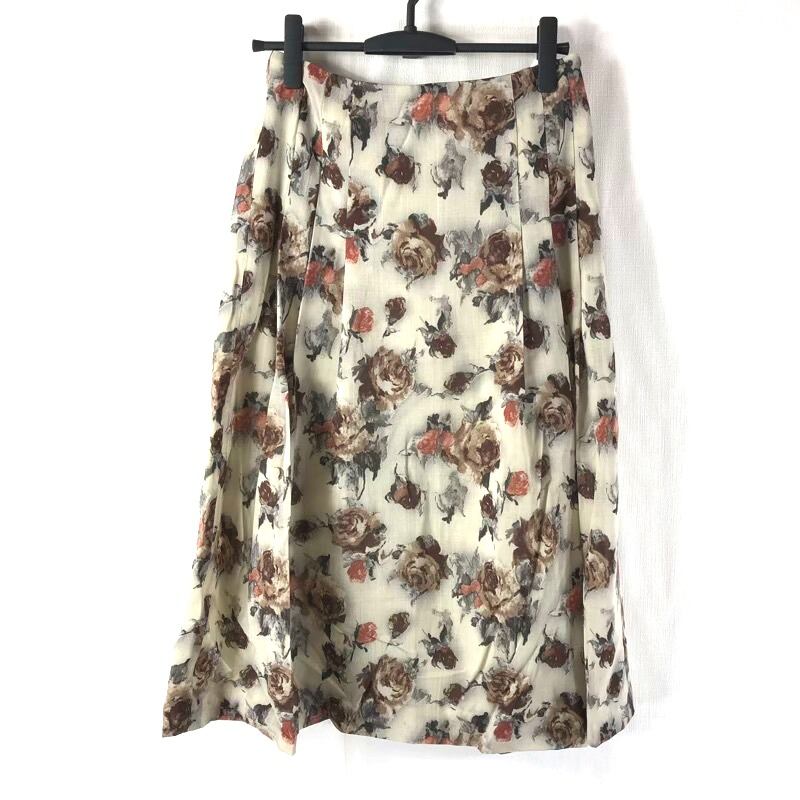 スキャパ SCAPA スカート プリーツ フレア 花柄 ベージュ ブラウン系 38サイズ 661908