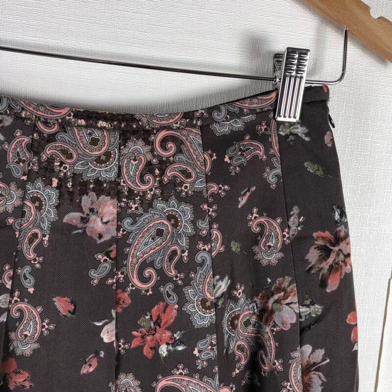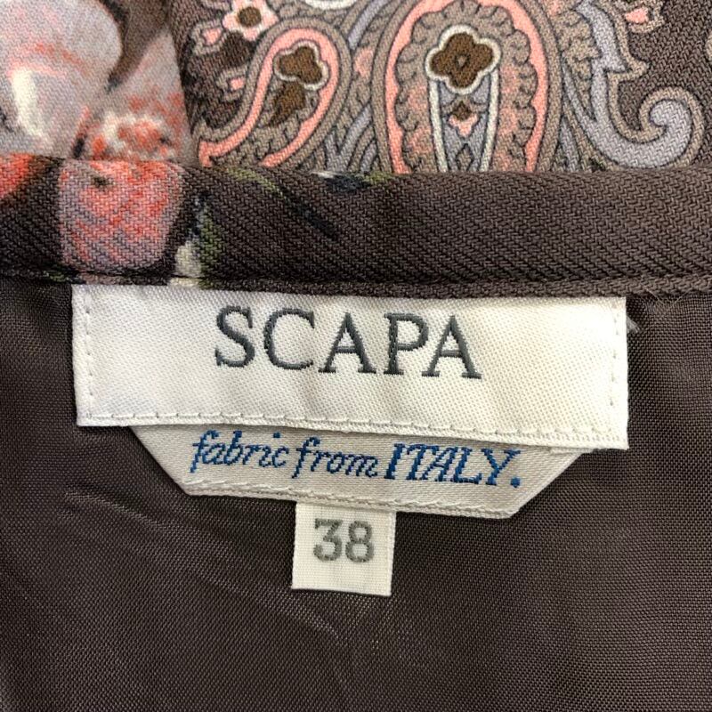 スキャパ SCAPA スカート フレア プリーツ エスニック柄 こげ茶系 38サイズ 661917
