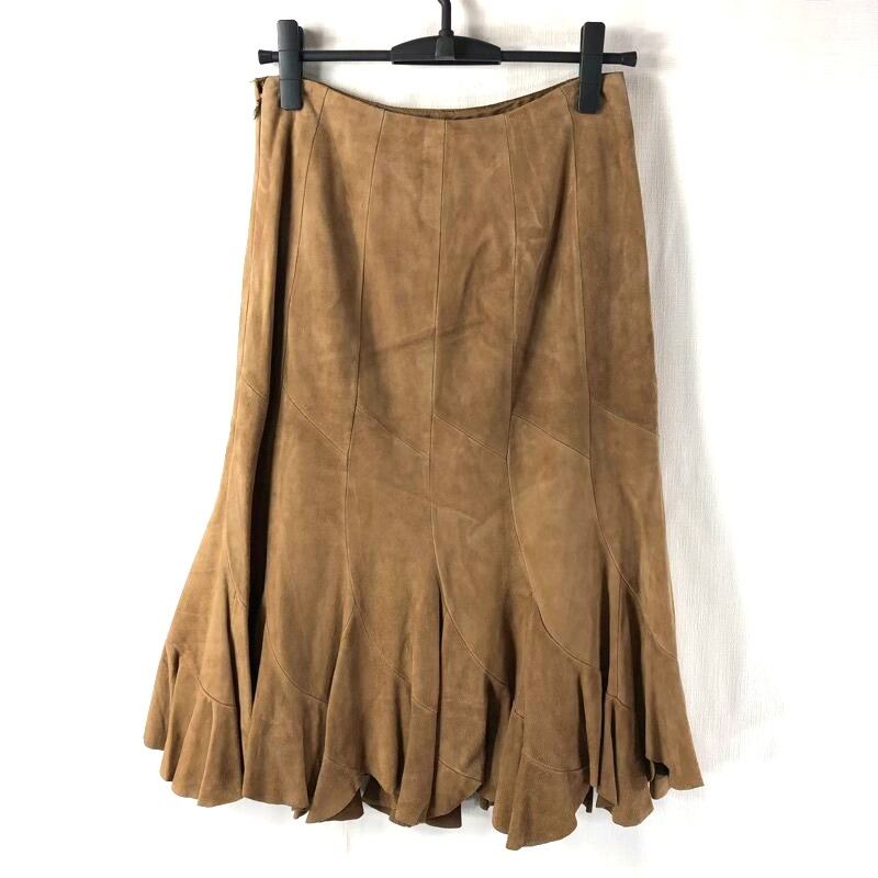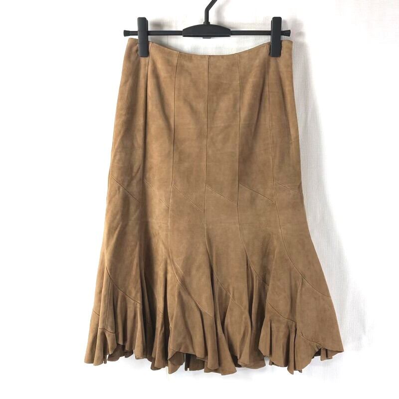 スキャパ SCAPA スカート 裾フレア 羊革 スエード キャメル 38サイズ 661922