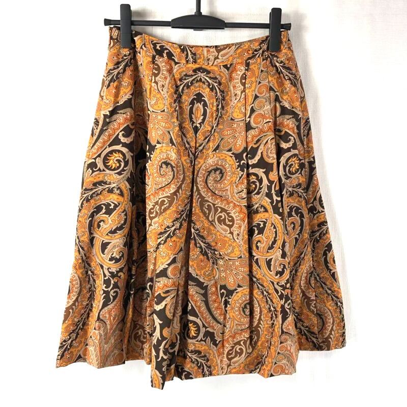 スキャパ SCAPA スカート プリーツ エスニック柄 ブラウン オレンジ系 38サイズ 661934