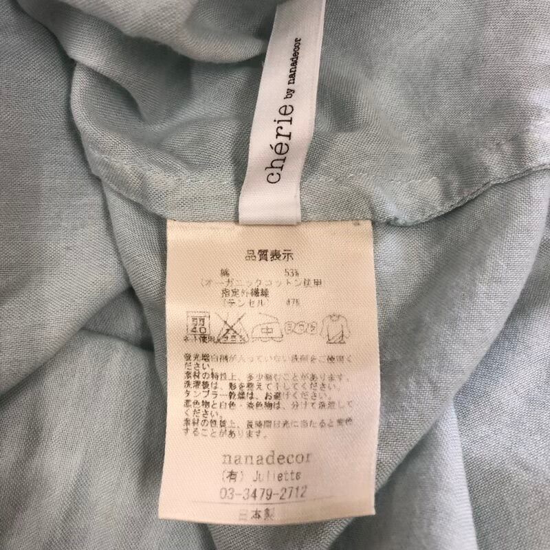ナナデェコール nanadecor チュニック オーガニックコットン レース リボン紐付き 日本製 水色 711077