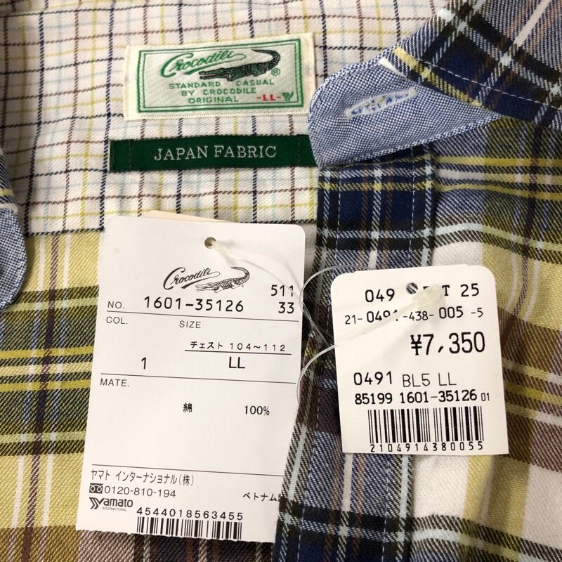 クロコダイル Crocodile シャツ 長袖 チェック柄 タグ付き LLサイズ 753851