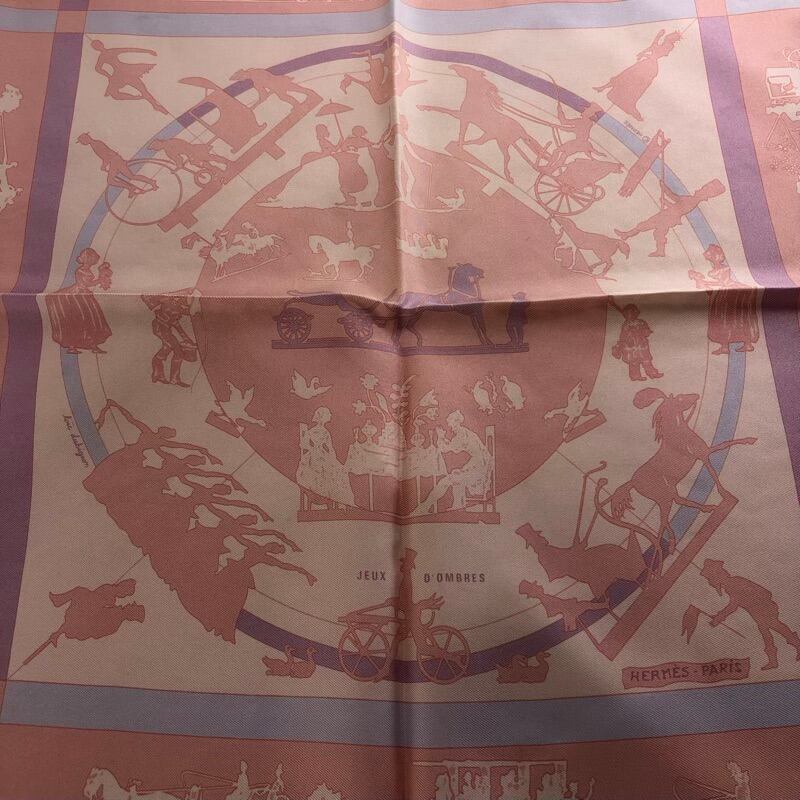 エルメス HERMES スカーフ JEUX D,OMBRES タグ付き フランス製 ロゴプリント ピンク系 753973