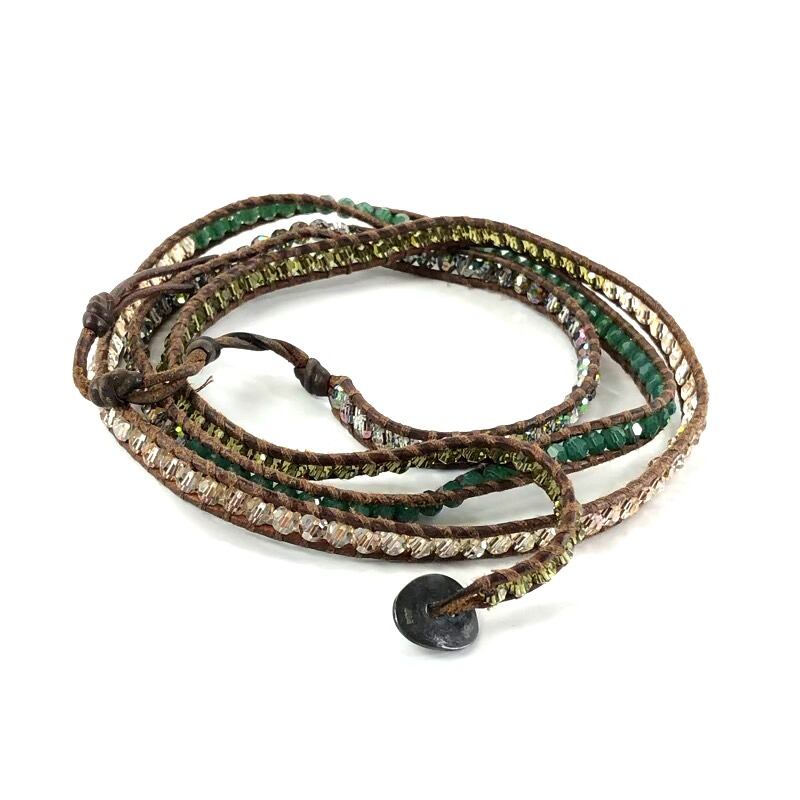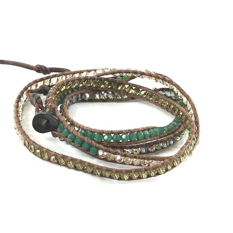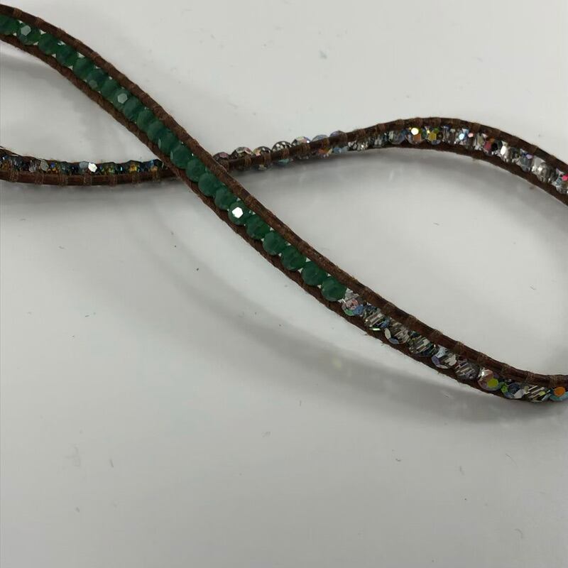チャンルー CHAN LUU ラップブレスレット ビーズ ロゴ入り 白 緑 ブラウン系 768719