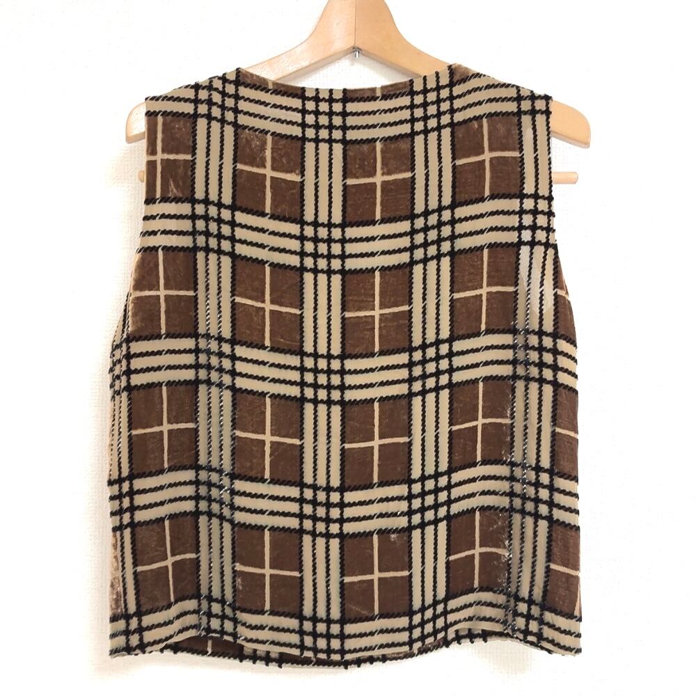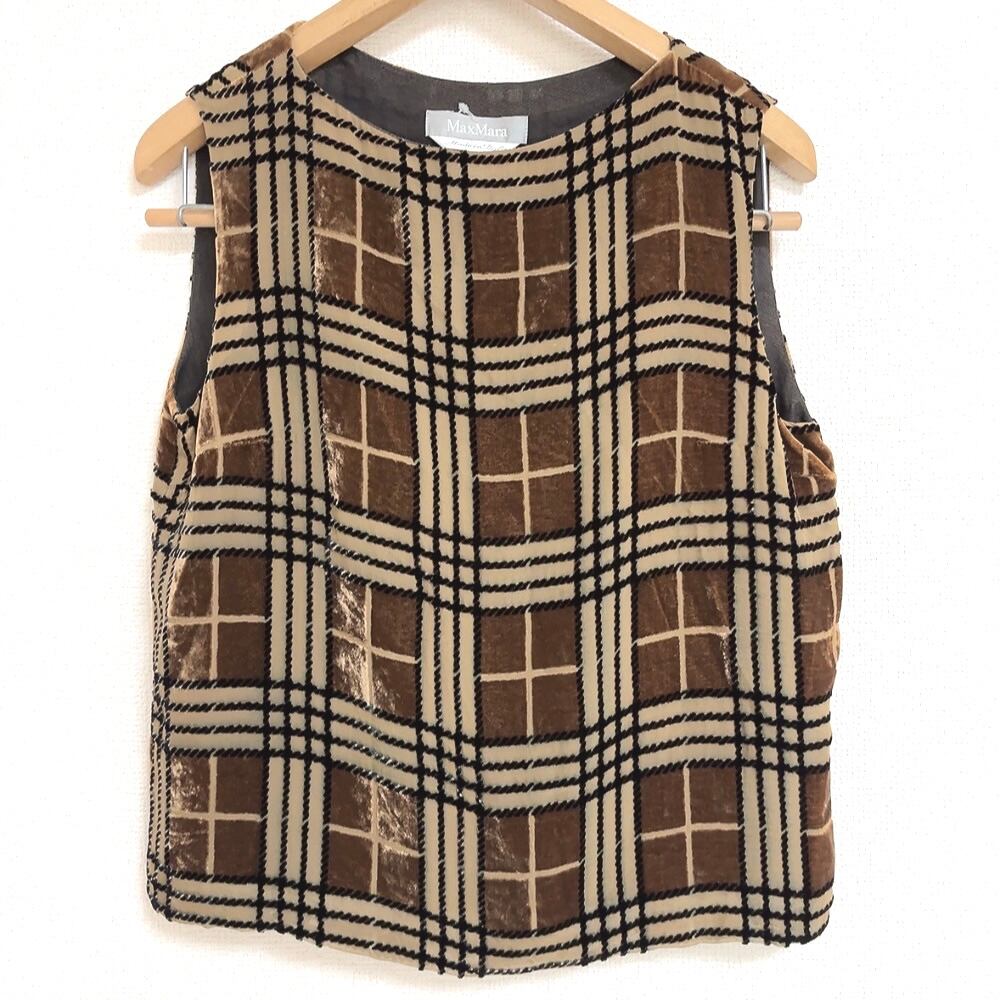 マックスマーラ Max Mara カットソー ノースリーブ チェック ブラウン系 42サイズ 795453