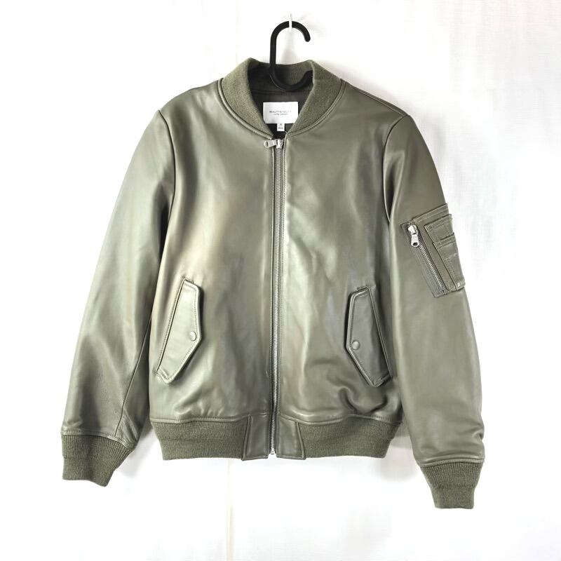 ビューティーアンドユース ユナイテッドアローズ BEAUTY&YOUTH UNITED ARROWS ジャケット レザー 羊革 ポケット リブ カーキ Mサイズ 799417