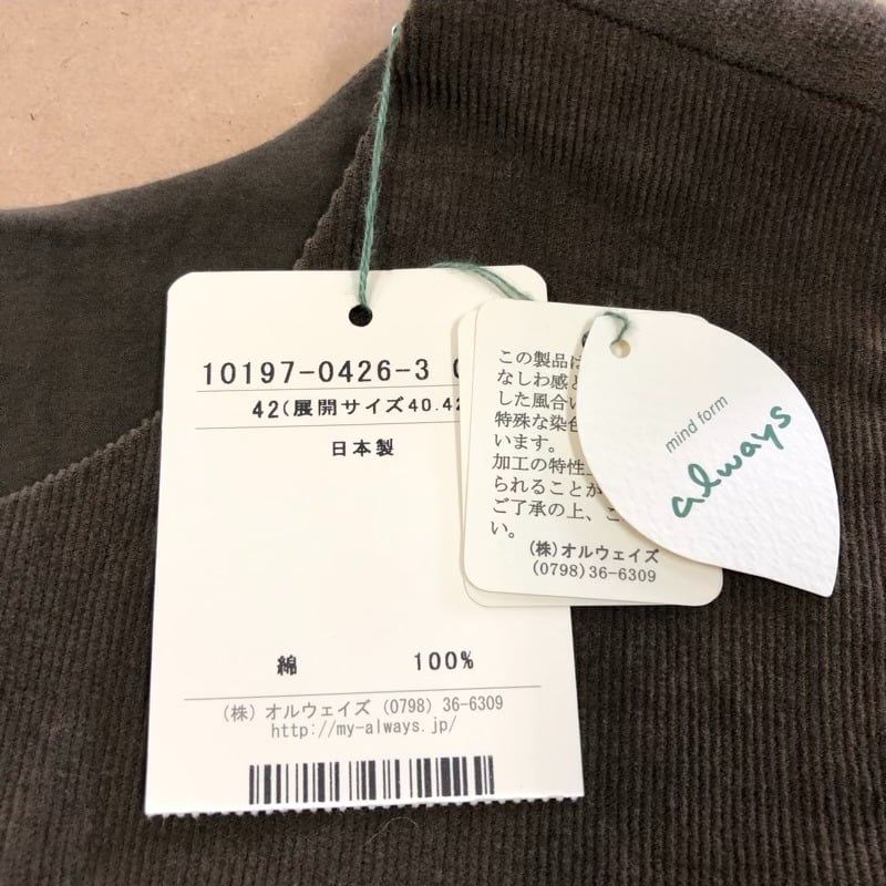 オルウェイズ ALWAYS セットアップ タグ付き ベストスカート コーデュロイ 裏地付き カーキ グリーン系 42サイズ 802509