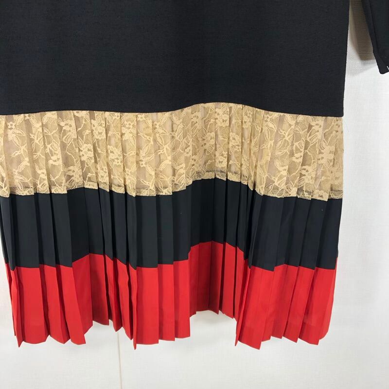 ダイアグラム グレースコンチネンタル Diagram GRACE CONTINENTAL ワンピース 長袖 プリーツ レース 裏地付き ベージュ 赤 黒 38サイズ 807756 | Ethical Store