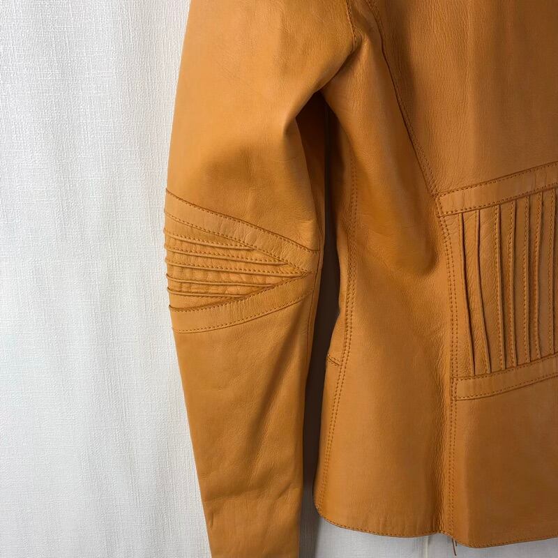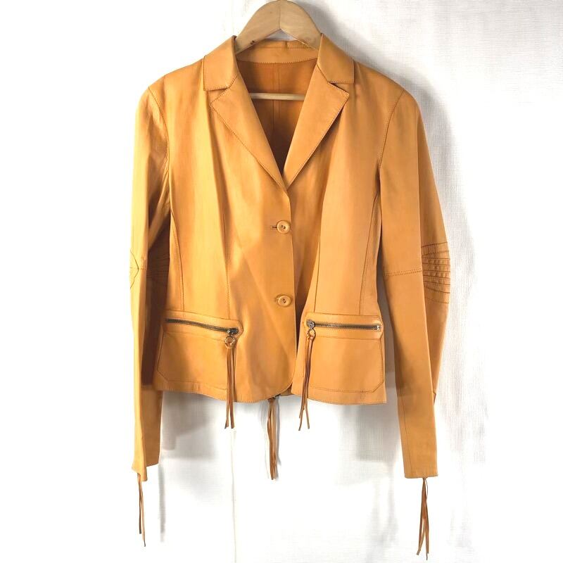 デュアルビュー DUAL VIEW レザージャケット 羊革 タッセル ジップ ボタン ポケット オレンジ 44サイズ 824818