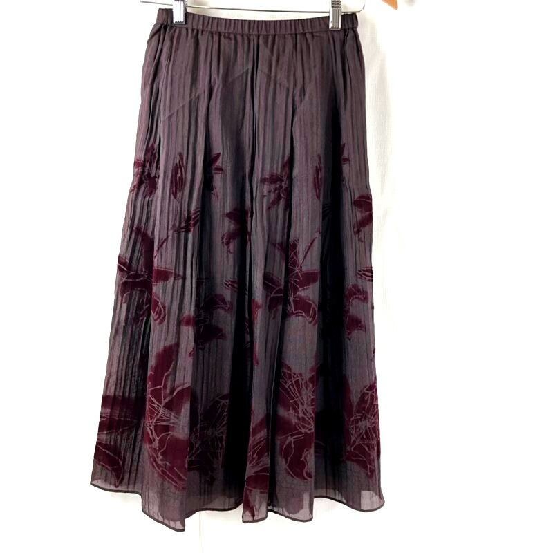 ケイコスズキコレクション KEIKO SUZUKI COLLECTION スカート タグ付き 花柄プリント ワッシャー加工 プリーツ ウエストゴム 裏地付き パープル系 40サイズ 825144 | Ethical Store