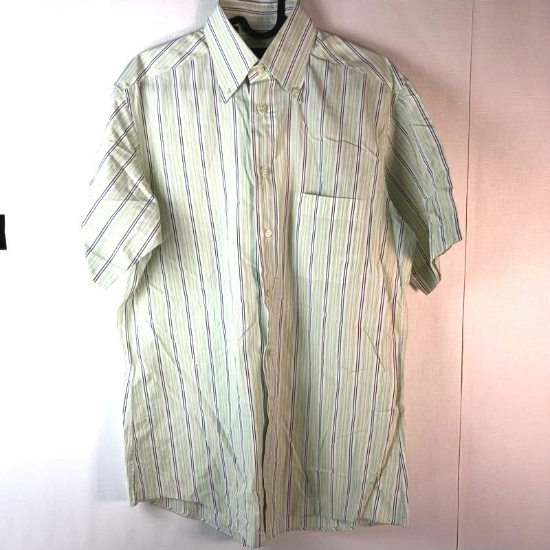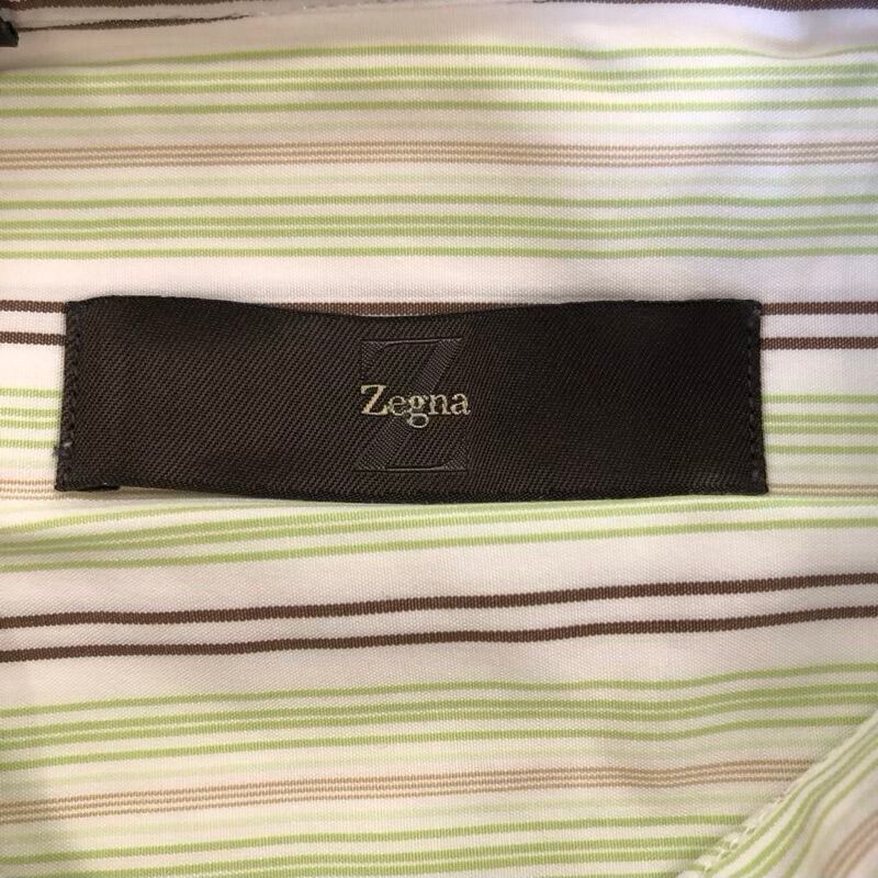 ゼニア Zegna シャツ ストライプ 緑系 半袖 Mサイズ 829249
