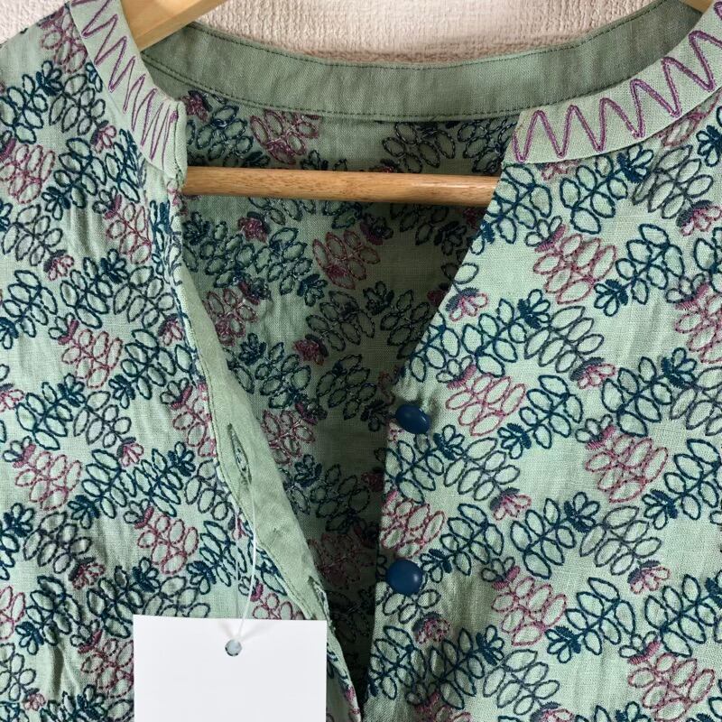 ホコモモラ jocomomola ワンピース 刺繍 グリーン 40サイズ 837028