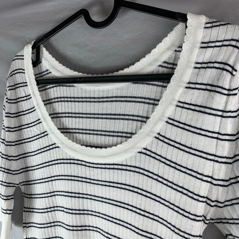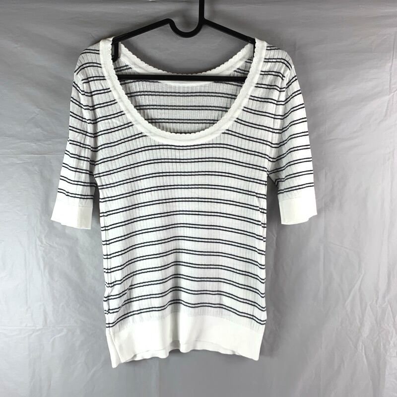 ジョンスメドレー JOHN SMEDLEY 七分ニット ボーダー 白 Sサイズ 845966