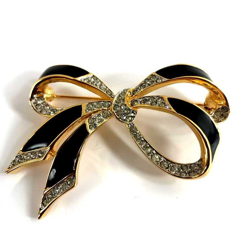 ニナリッチ NINA RICCI ブローチ リボンデザイン ラインストーン ブラック系 ゴールド系 847475