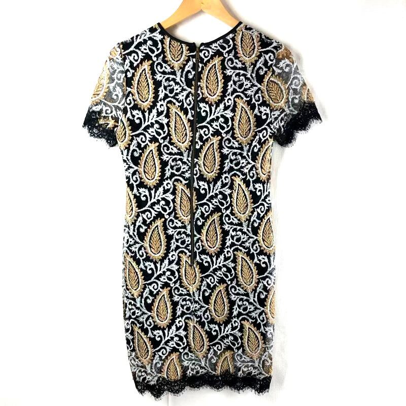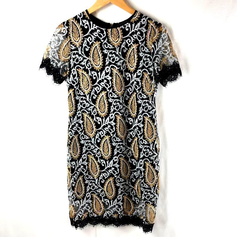サプライアンドデマンド supply & demand 刺繡入りワンピース made in USA 半袖 レース フリンジ付き 裏地付き ブラック系 8号 847909 | Ethical Store