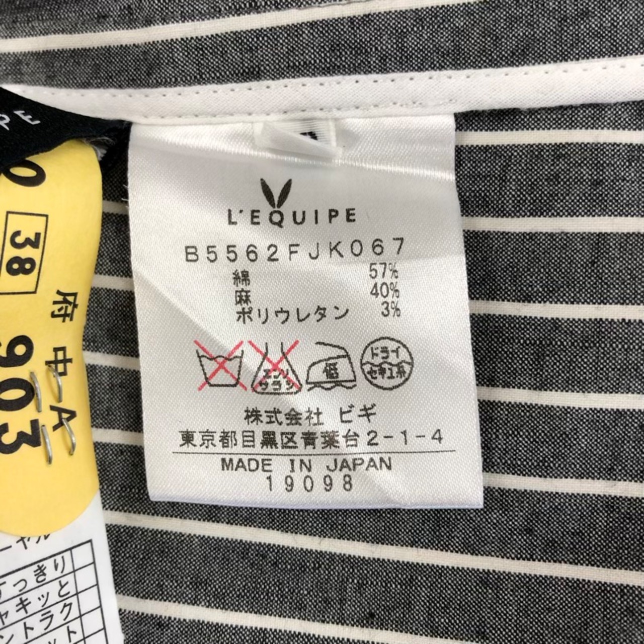 レキップ LEQUIPE ジャケット ストライプ ヨシエイナバ 飾りポケット 白ボタン グレー 白 38サイズ 853867