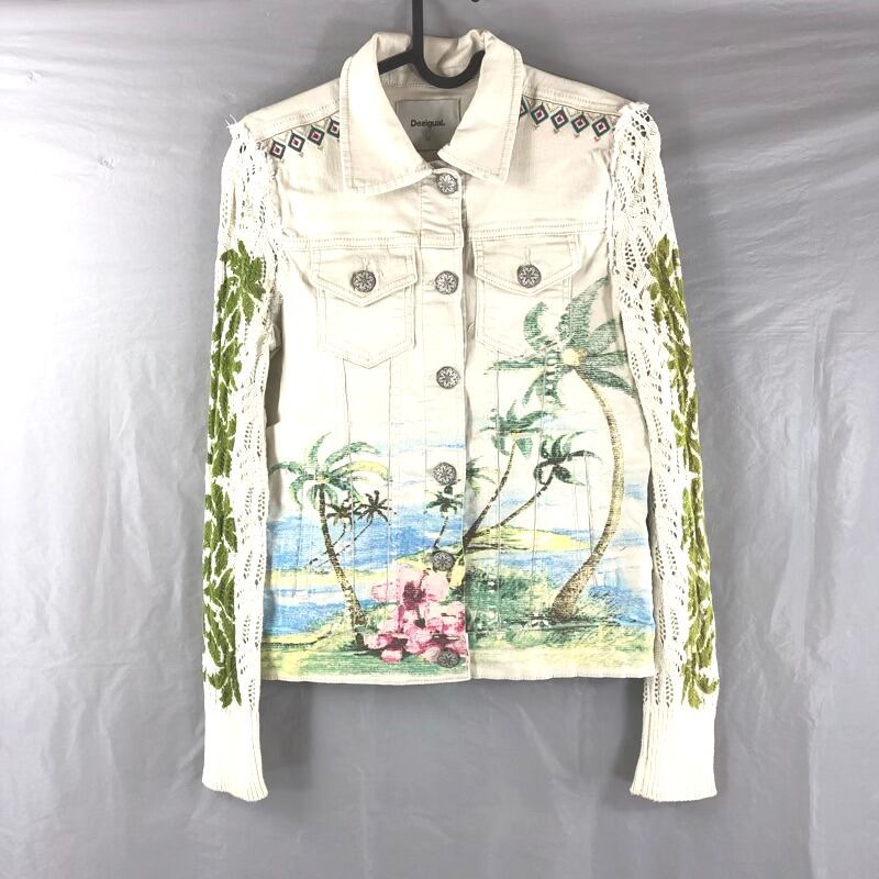 デシグアル Desigual ジャケット デニム ニット切り替え ボタニカル柄 ライトベージュ系 34サイズ 855549