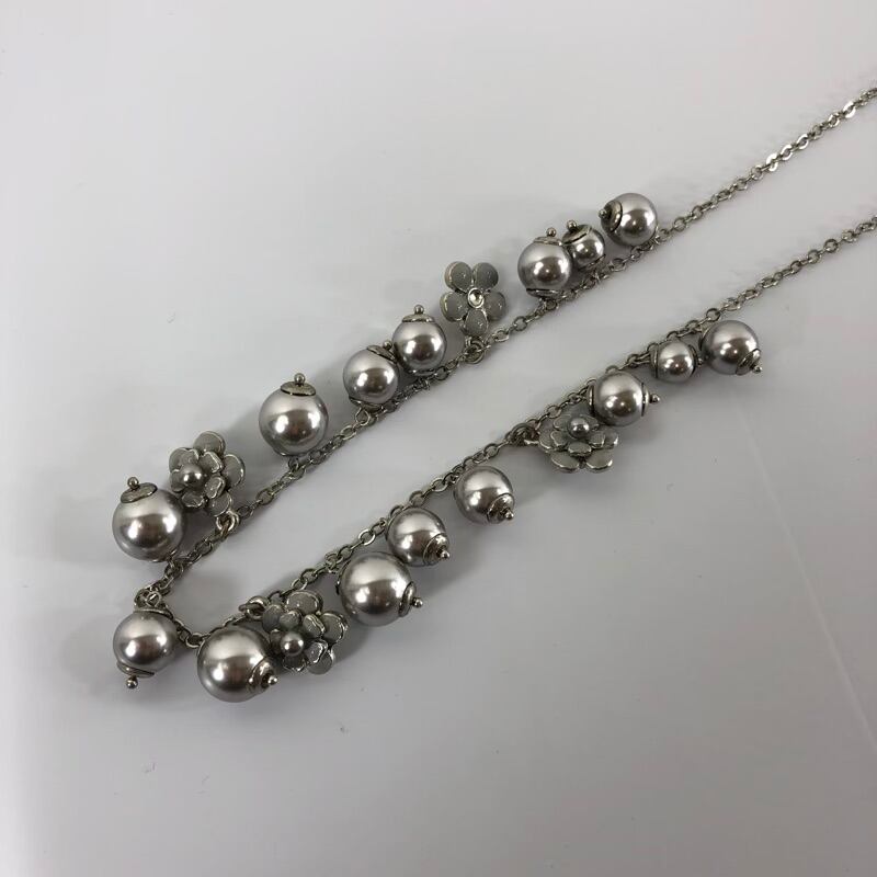 インゲボルグ INGEBORG ネックレス 2連 花びらパーツ グレー シルバー色 856481