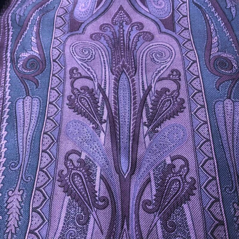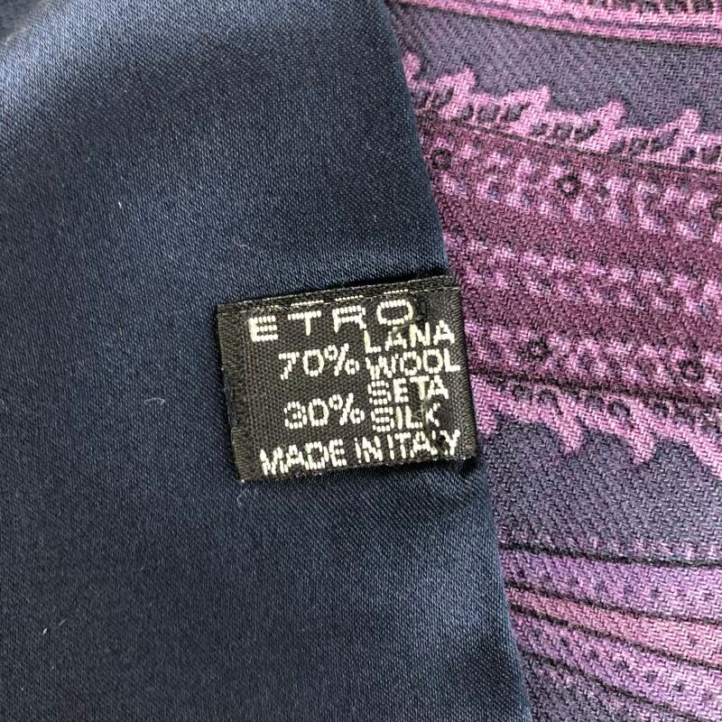 エトロ Etro ミニショール シルク混 イタリア製 エスニック柄 紫 紺 857383