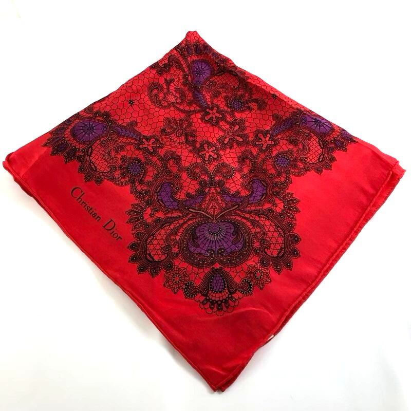 クリスチャンディオール Christian Dior スカーフ ストール シルク100% ロゴプリント 柄プリント 赤色系 858873
