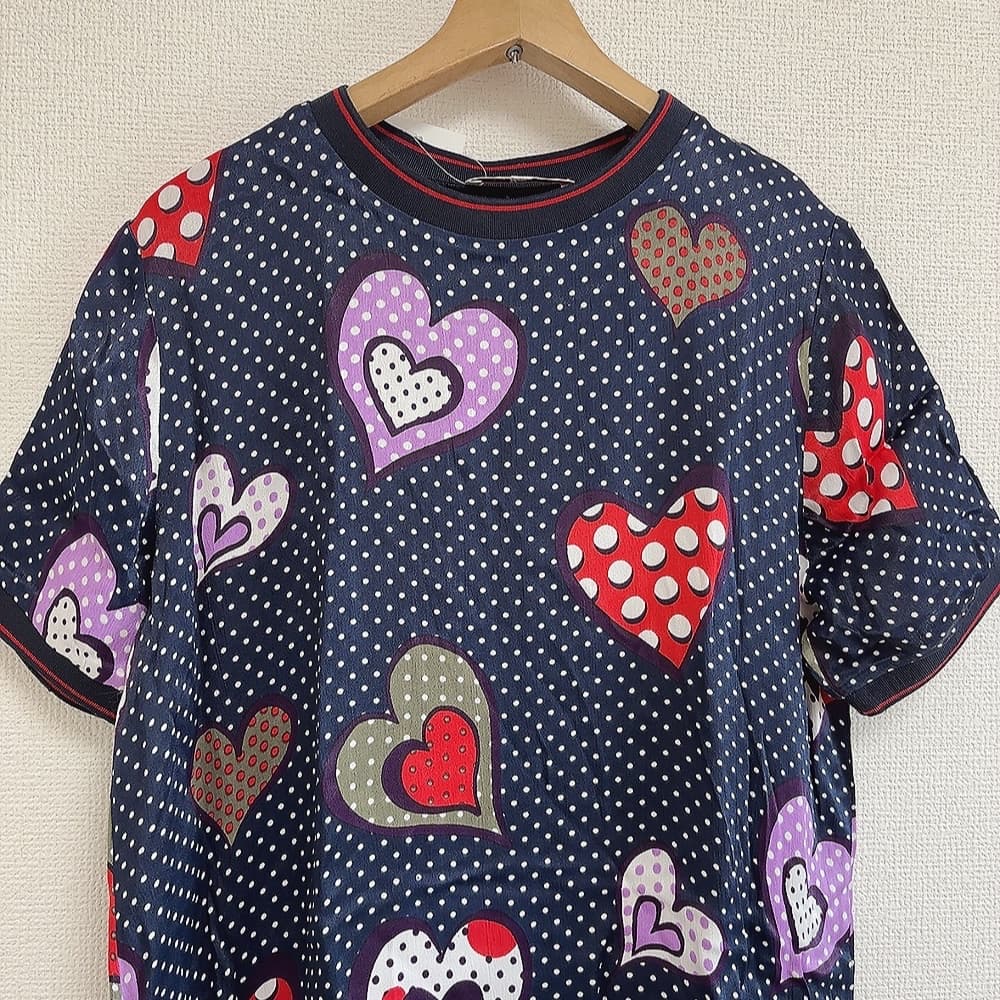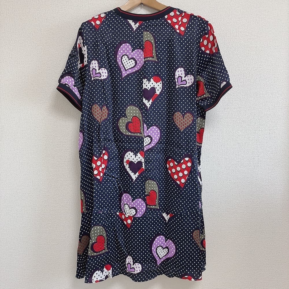 ルネデリ Derhy ワンピース Tシャツ 半袖 ハート ドット ネイビー Lサイズ 860839