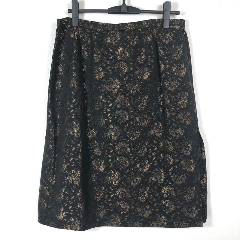 レリアン Leilian スカート ひざ丈 花柄 ブラック 15+サイズ 862389