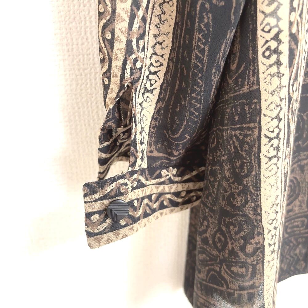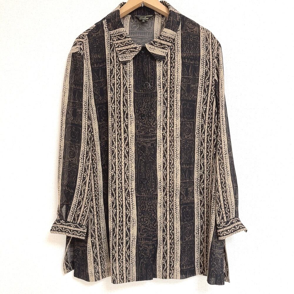 レリアン Leilian シャツ ブラウス 長袖 ゴージャス ブラックxゴールド 15+サイズ 868157