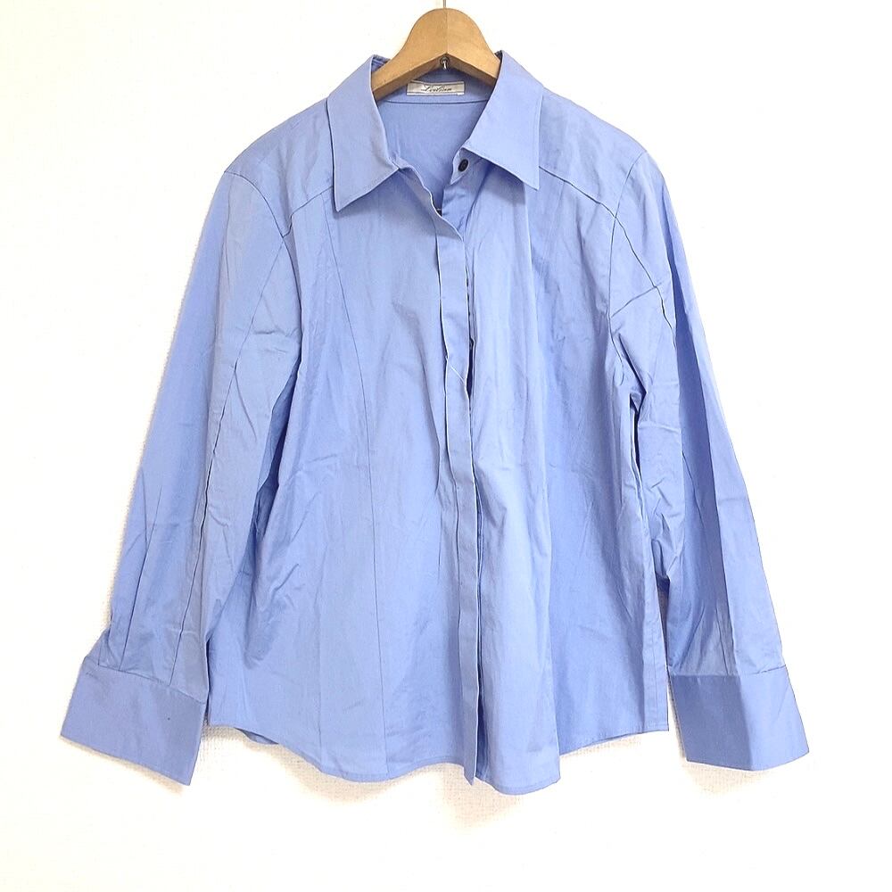 レリアン Leilian シャツ ブラウス 長袖 ブルー 15+サイズ 868159