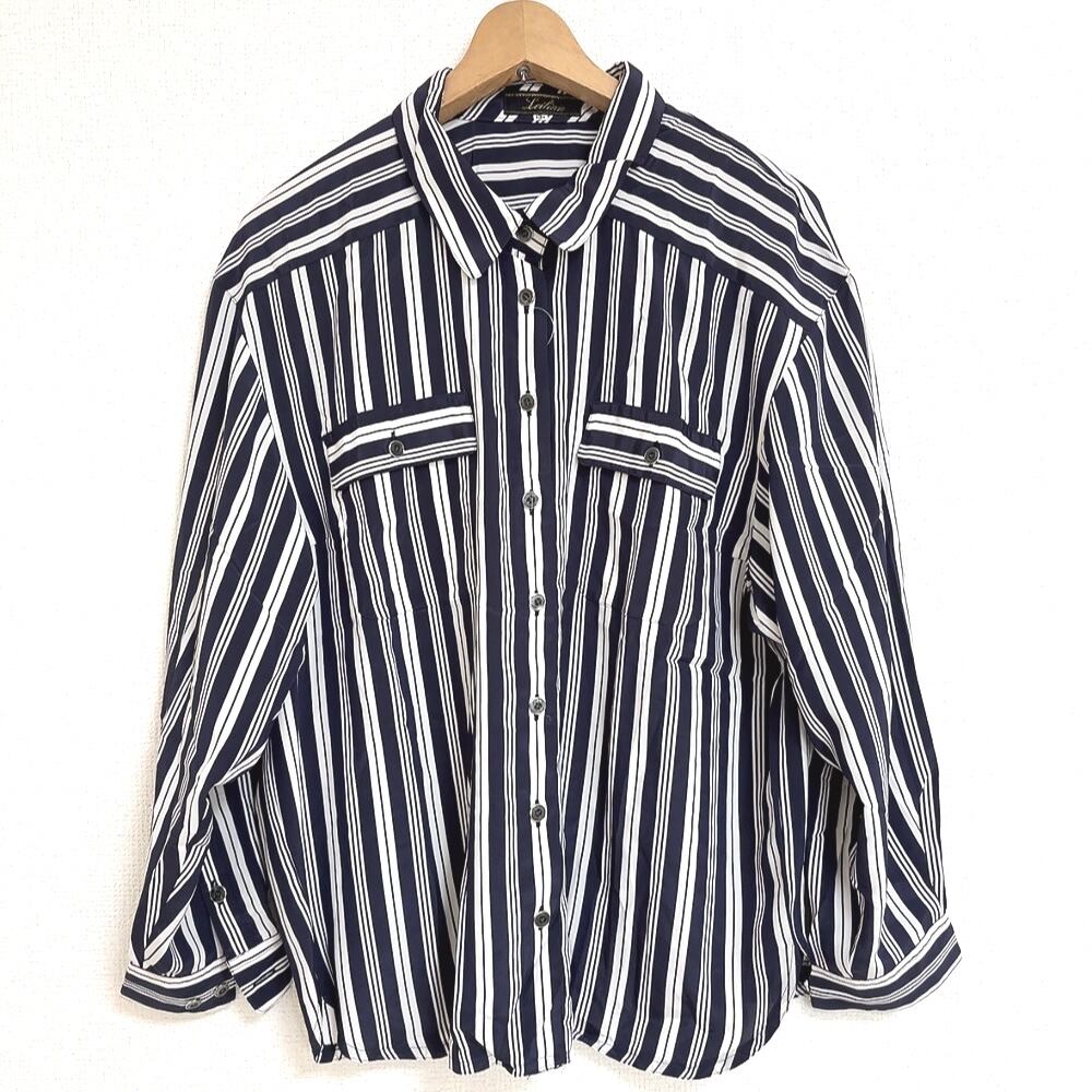 レリアン Leilian シャツ ブラウス 長袖 ストライプ ネイビー 13+サイズ 868171