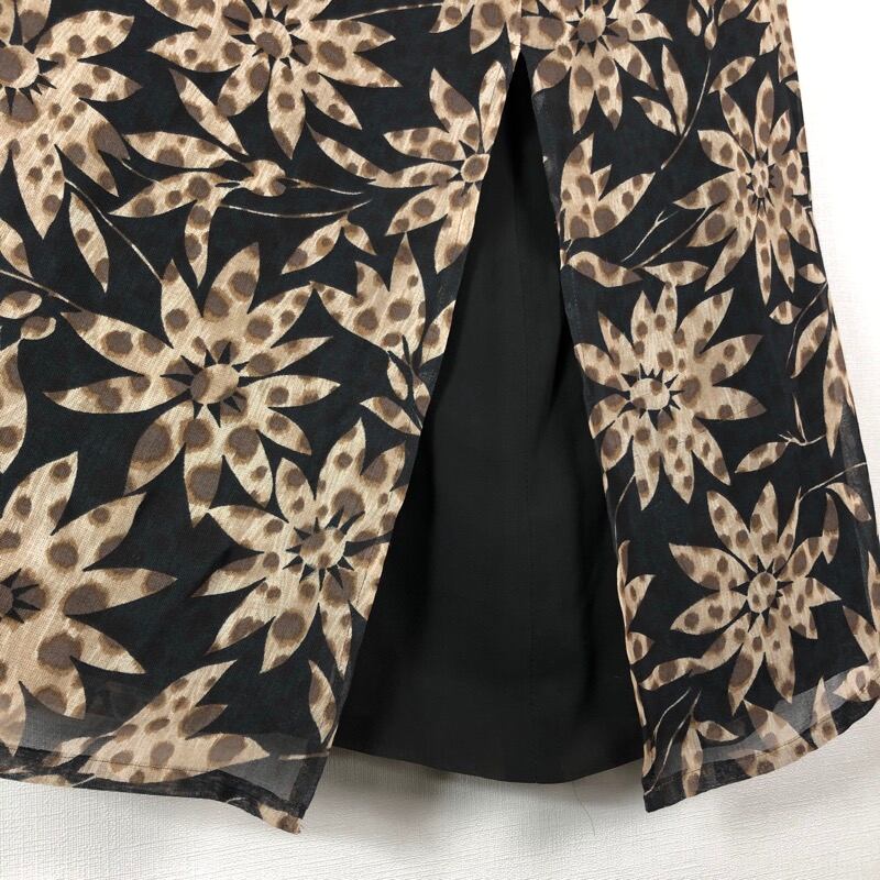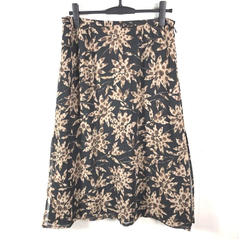 レリアン Leilian スカート ひざ丈 黒地 花柄 13+サイズ 868750
