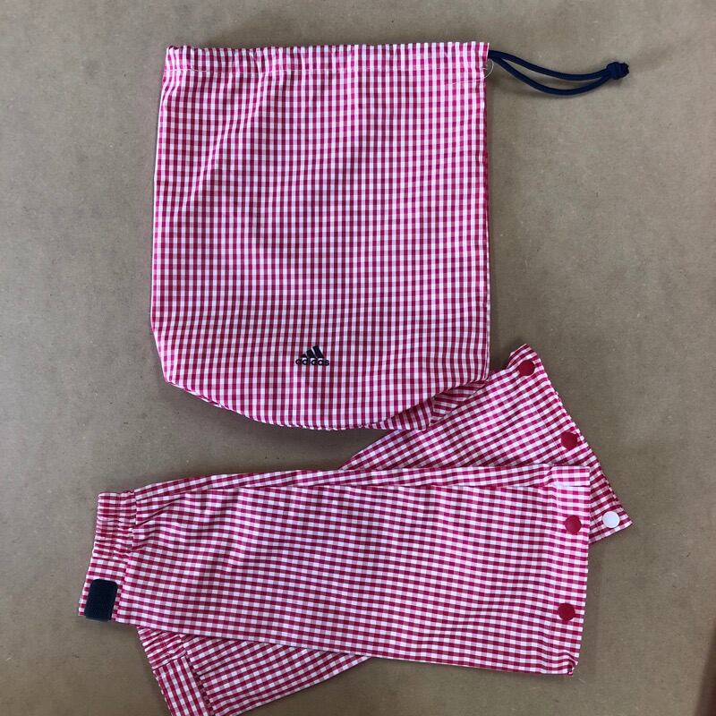 アディダス adidas ナイロンワンピース レッド ホワイト チェック 袋付き ゴルフレインウェア XS/XPサイズ 868958