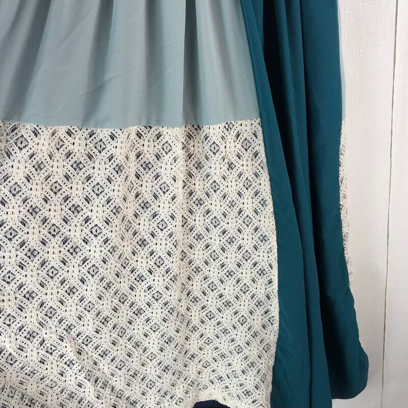 ふりふ スカート レース フレア 切り替えデザイン ウエストゴム 白 緑系 FREEサイズ 871449