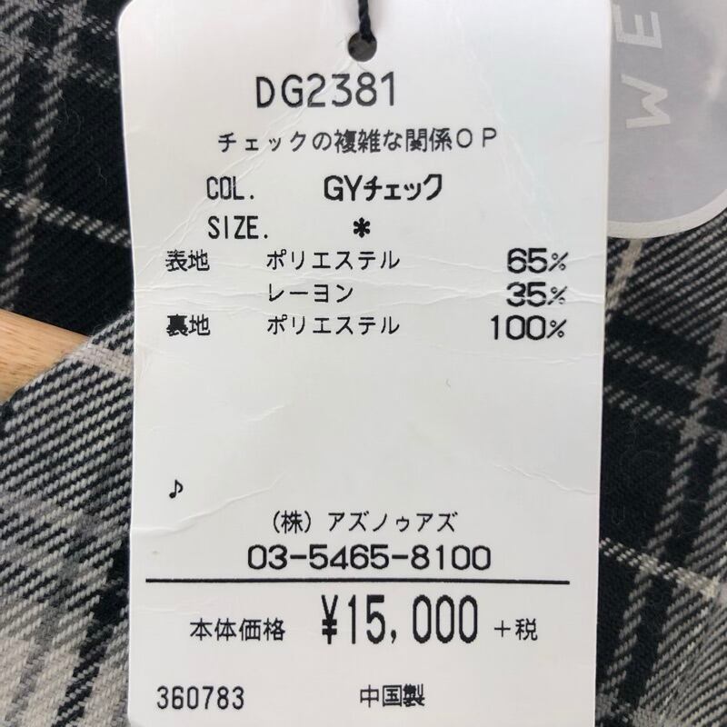 アズノウアズ エニーウェア AS KNOW AS ANY WEAR ワンピース 長袖 チェック グレー タグ付き サイズ表記なし 871727