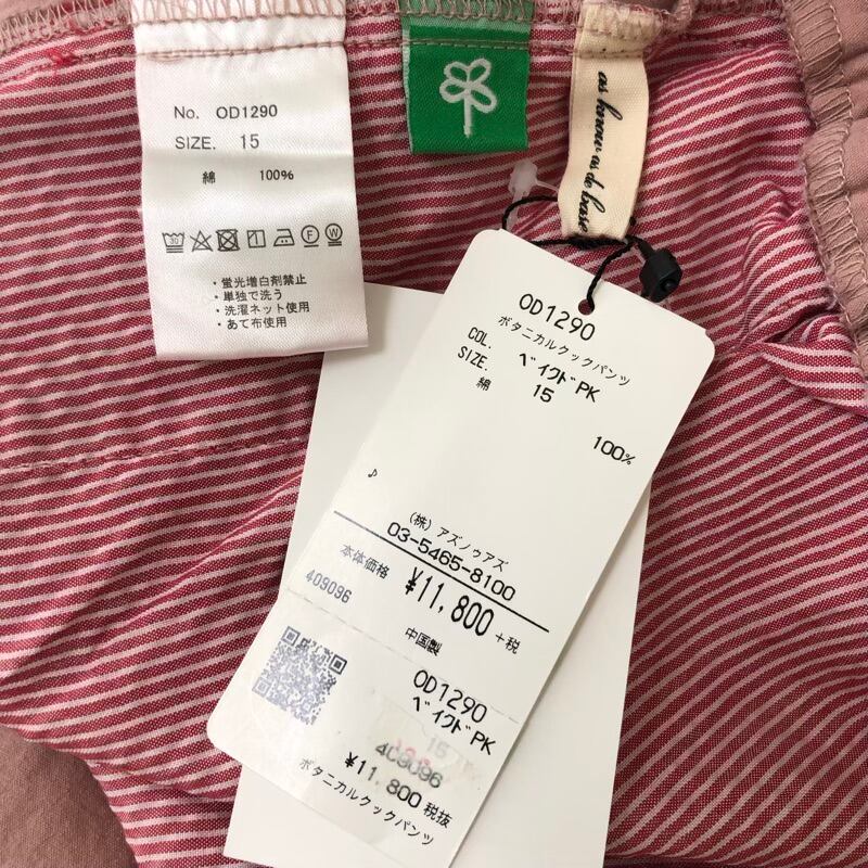 アズノゥアズドゥバズ as know as de base パンツ ボタニカル 綿100% ピンク タグ付き 15サイズ 871728