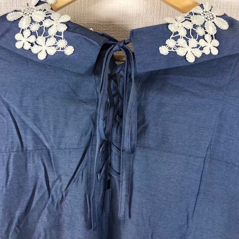 アズノゥアズドゥバズ as know as de base ワンピース ちらりレースのとろみOP NVシャンブレ ブルー系 レーヨン混 タグ付き サイズ表記なし 871740