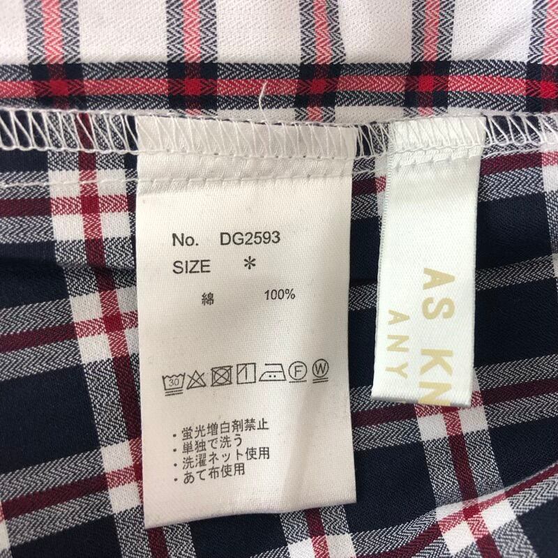 アズノウアズ エニーウェア AS KNOW AS ANY WEAR ワンピース チェック 赤 紺 綿100% タグ付き サイズ表記なし 871748