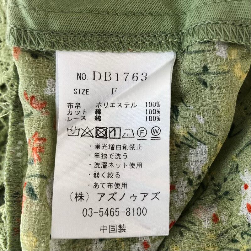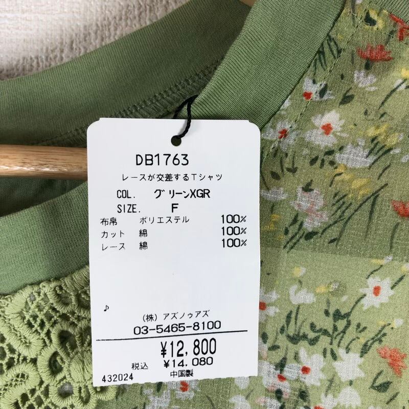 アズノウアズ AS KNOW AS Tシャツ グリーン系 交差レース タグ付き サイズフリー 873211