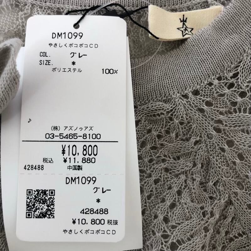 アズノゥアズドゥバズ as know as de base トップス 透け感 やさしくポコポコCD グレー タグ付き サイズ表記なし 873230