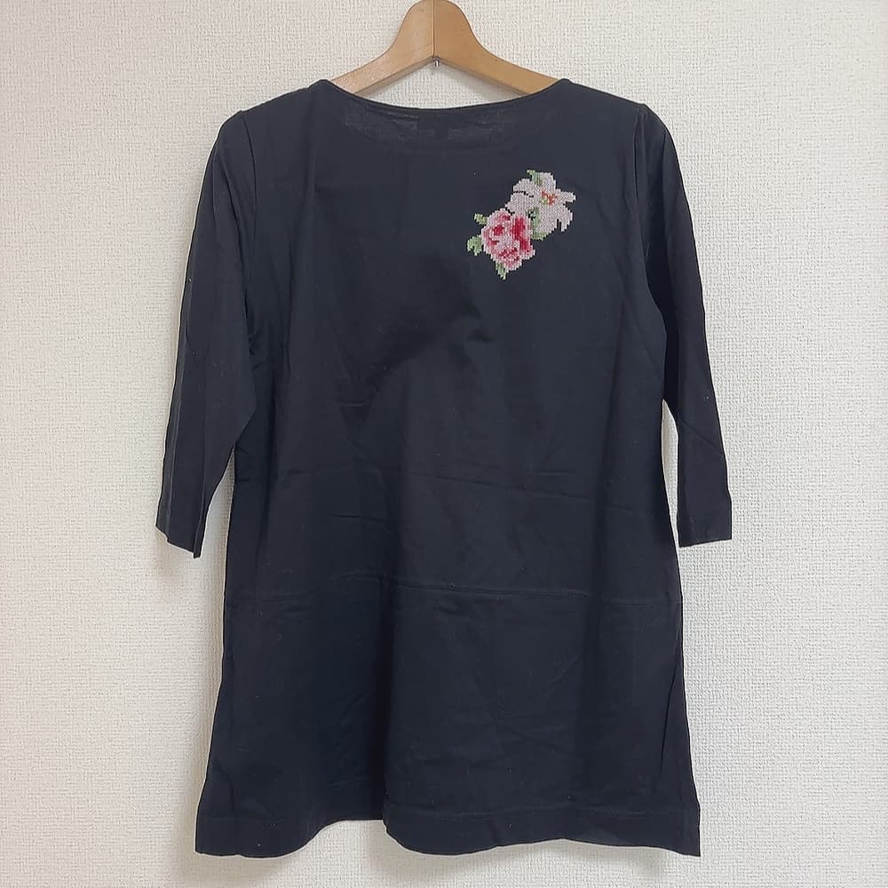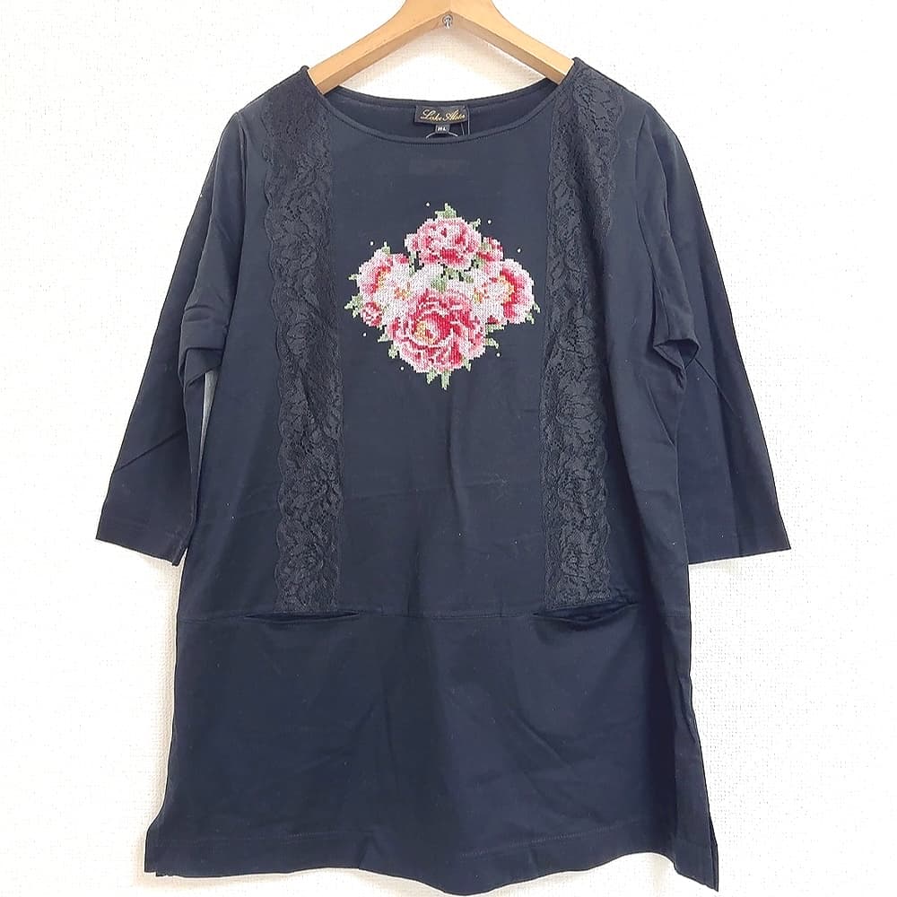 レイクアルスターLake Alster 新品 ロングTシャツ 花柄 刺しゅう ブラック M-Lサイズ 873238