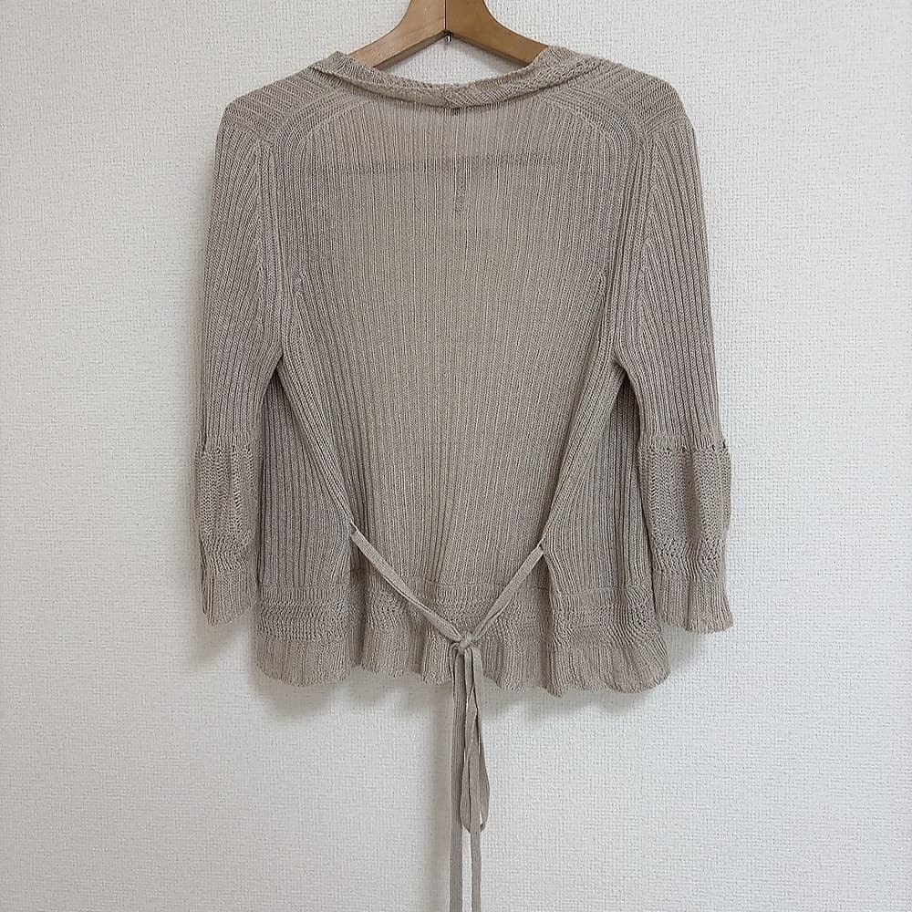 アマカ AMACA カーディガン 長袖 リボン ベージュ 38サイズ 873249