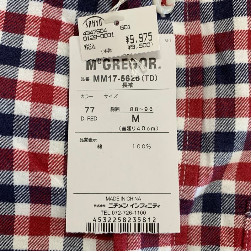 マックレガー McGREGOR シャツ チェック柄 タグ付き 赤 紺 白 Mサイズ 874345