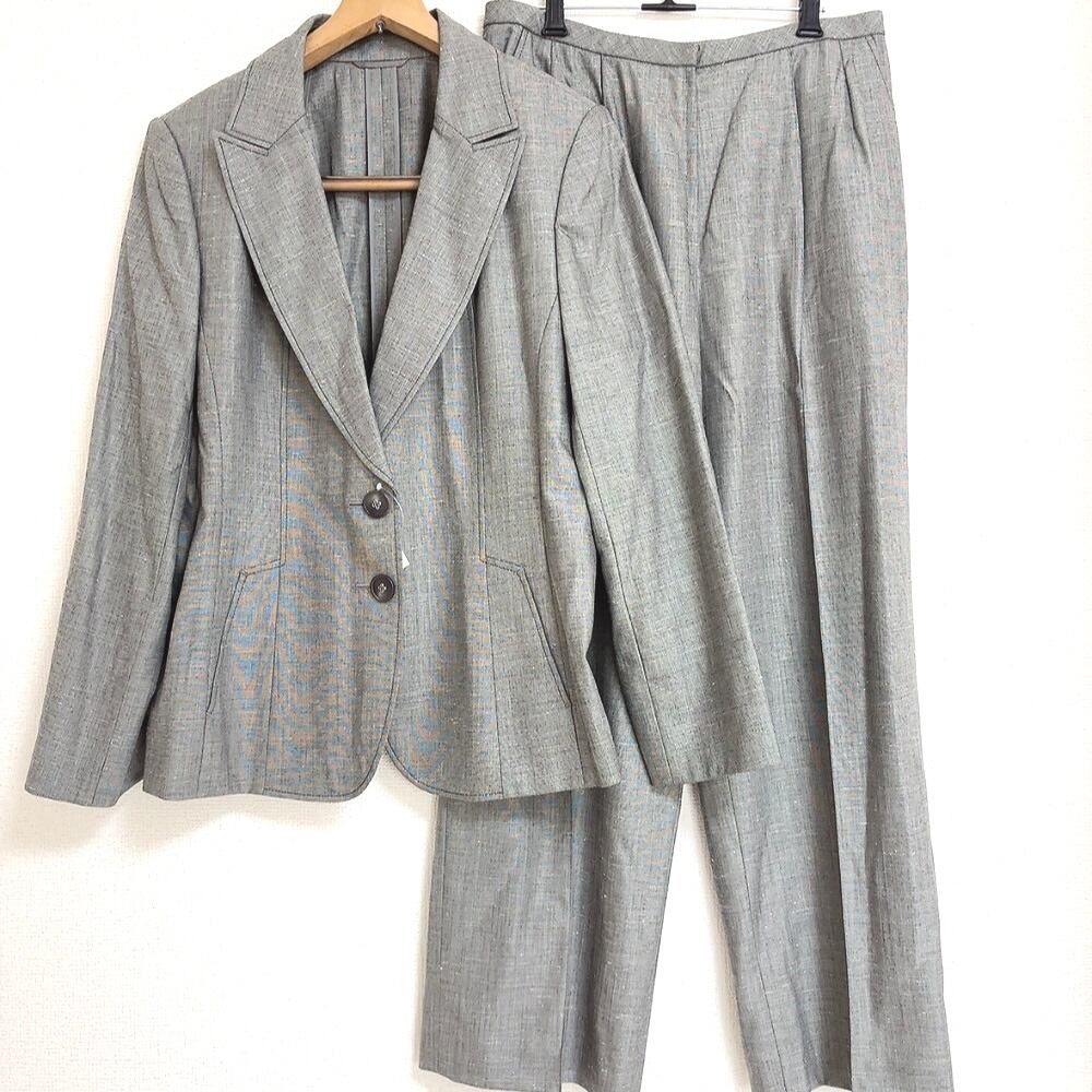 レリアン Leilian セットアップ ジャケット パンツスーツ グレー 13+サイズ 874379