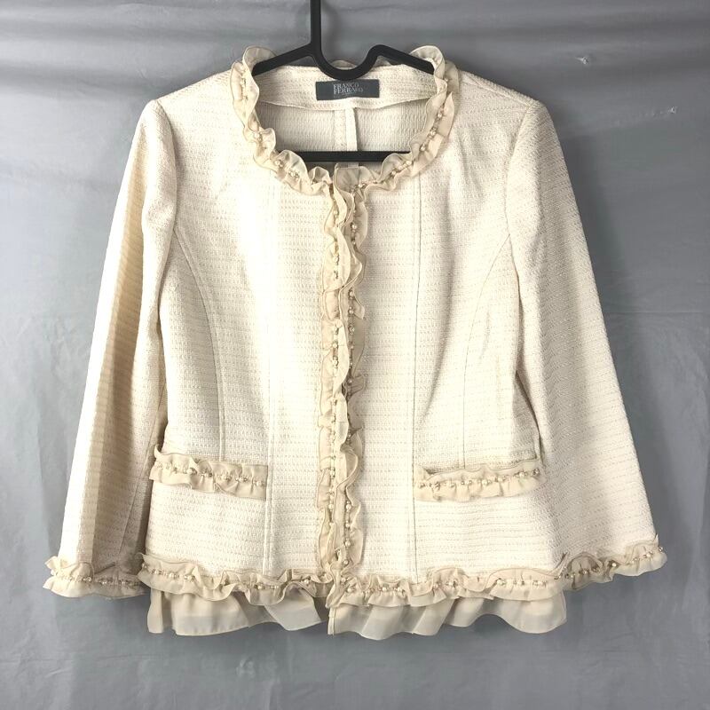 フランコフェラーロ FRANCO FERRARO ジャケット フリル パール ベージュ系 875187
