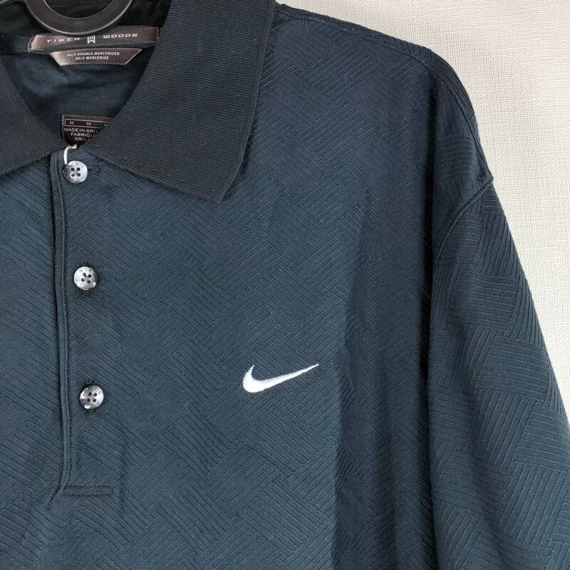 ナイキ NIKE タイガー・ウッズ TIGER WOODS ポロシャツ 半袖 ロゴ刺繡 タグ付き 黒 濃紺系 Mサイズ 877092