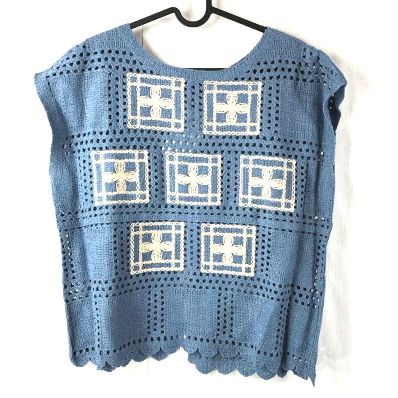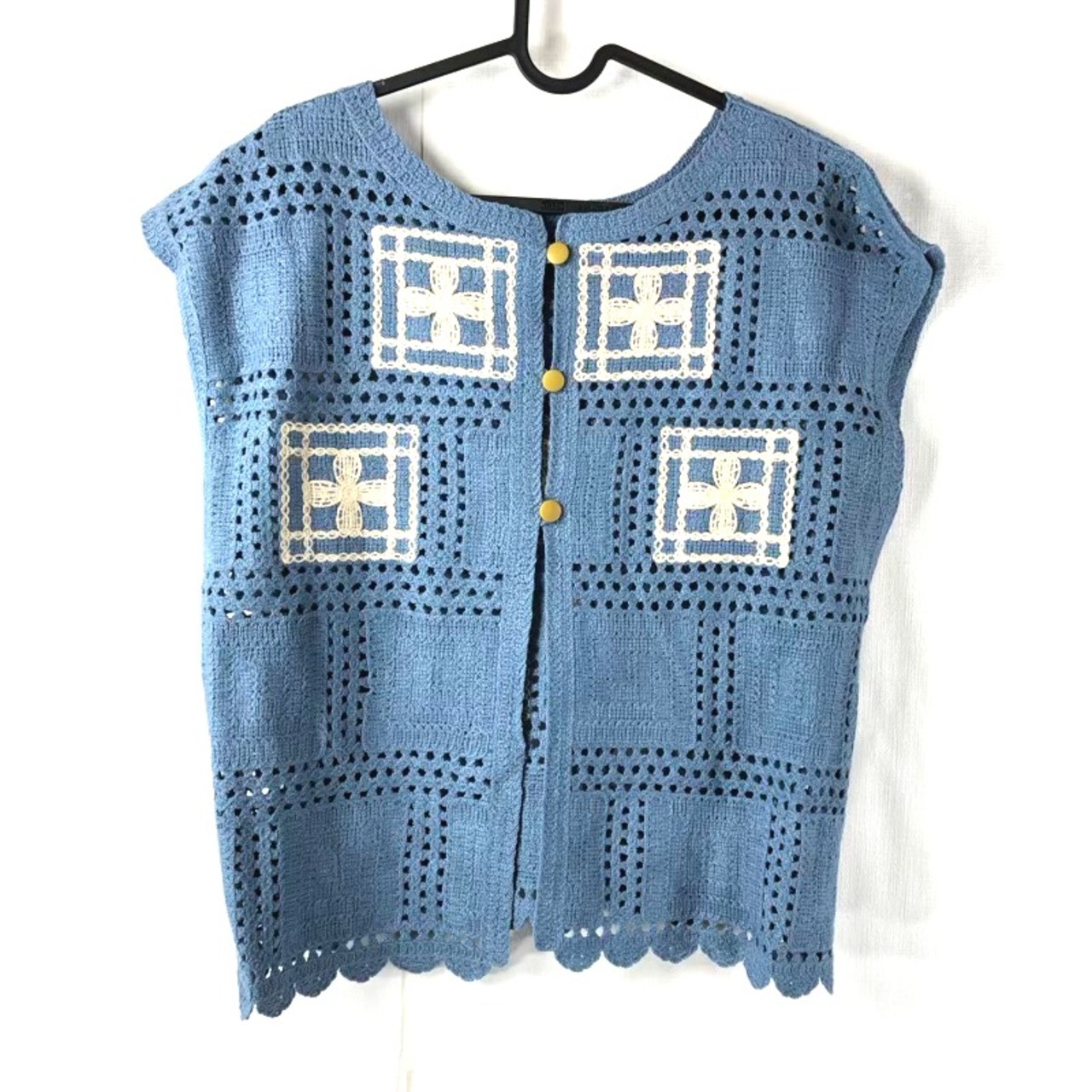 ホコモモラ Jocomomola ベスト ニット編み ブルー系 40サイズ 878358