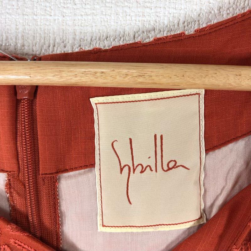 シビラ Sybillar ワンピース ノースリーブ 紐ベルト付き オレンジ系 Mサイズ 878772