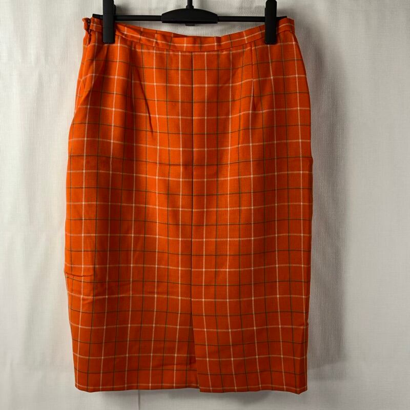 リペルボール L'iperbole スーツ スカート セットアップ チェック柄 ゴールドボタン 肩パッド オレンジ 44サイズ 878831
