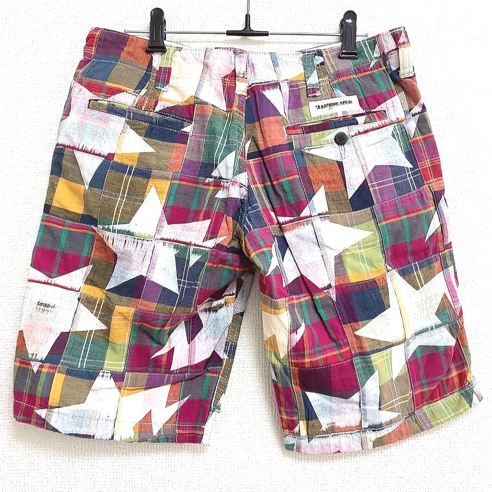 ア ベイシング エイプ A BATHING APE パンツ チェック 星 マルチカラー XSサイズ 879999