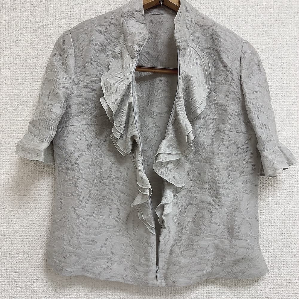 ジュンアシダ jun ashida ブラウス 半袖 フリル グレー Mサイズ 884430